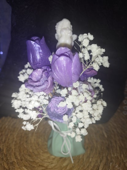 Bouquet de fondants en fleurs avec un petit vase ange